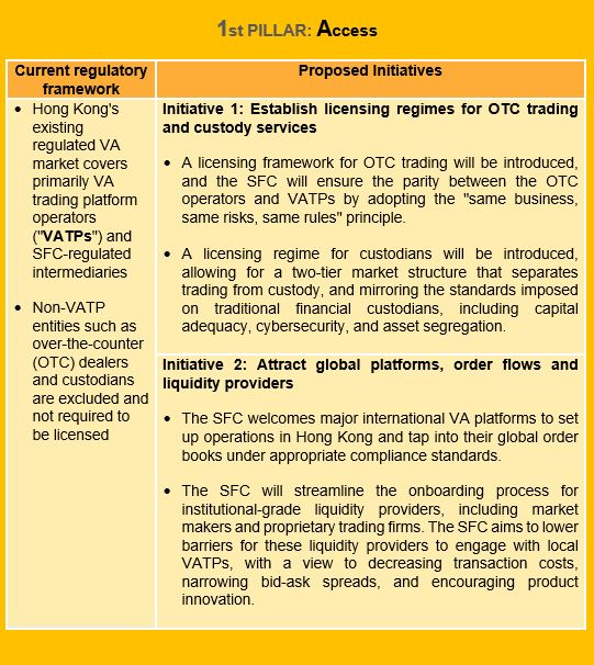 It is worth noting that the SFC has not provided a specific timeline for the implementation of each initiative. However, we anticipate that progress on the licensing regimes for OTC trading and custody services is likely to advance more quickly, as these initiatives have been previously signposted and are not entirely new concepts.